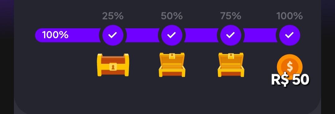 Está no caminho certo Deia! Vc ao chegar nos 75% vai ganhar vários bilhetes do sorteio e na sequência vai continuar na trilha rumo aos 100%!! Vai dar tudo certo!