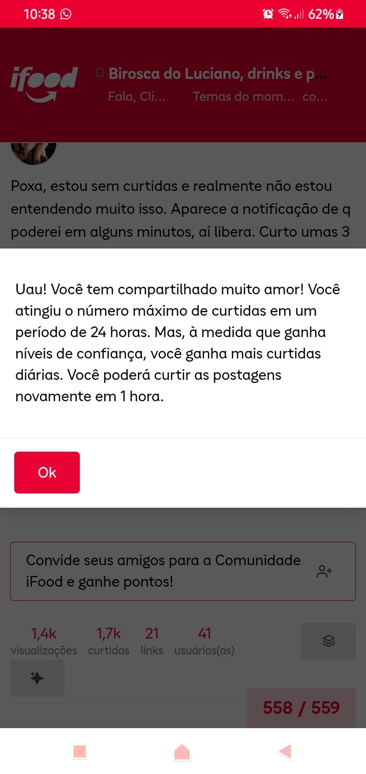 Poxa, estou sem curtidas e realmente não estou entendendo muito isso. Aparece a notificação de q poderei em alguns minutos, aí libera. Curto umas 3 postagens e bloqueia de novo, dizendo q só poderei horas depois