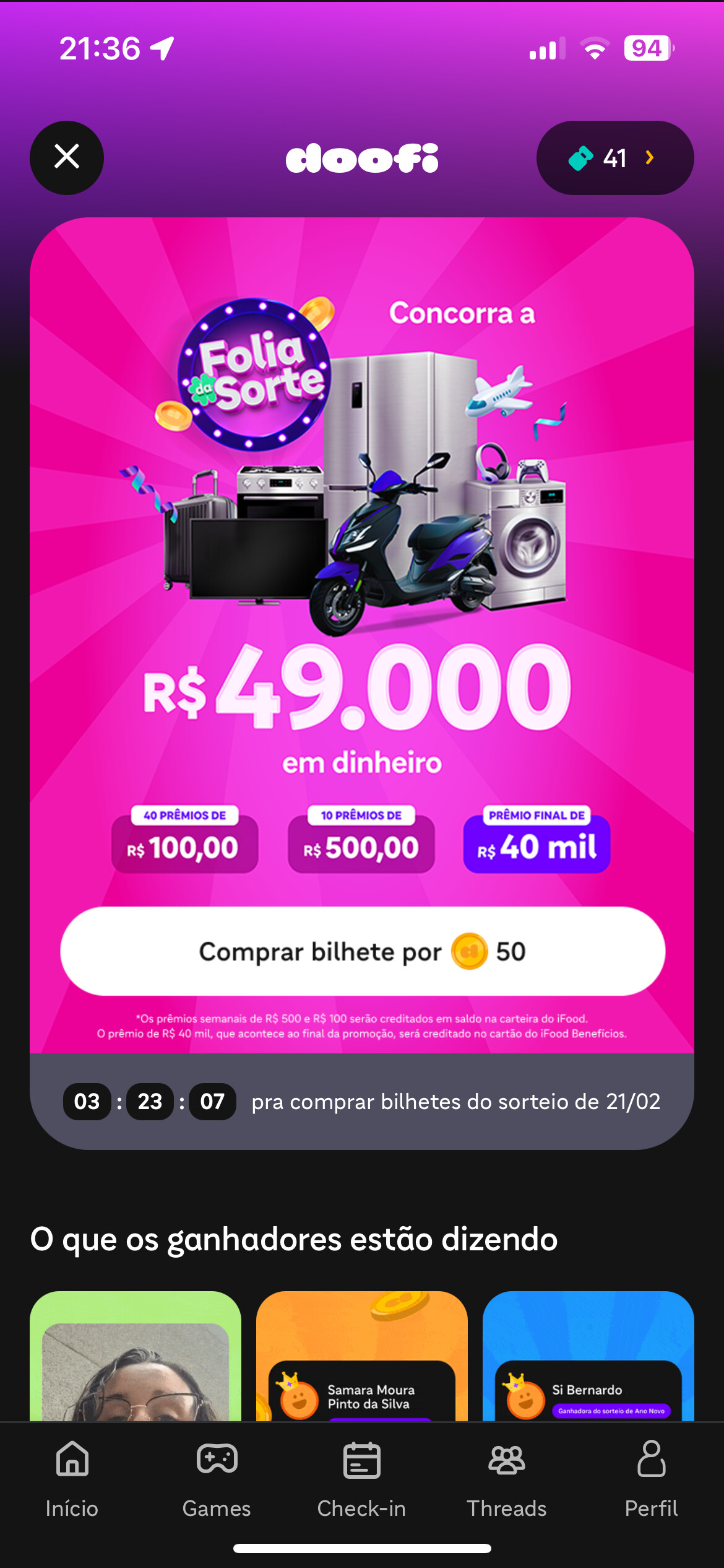 Doofi está de perfil novo no aplicativo. Heheheh adorei. Já se preparando pro lançamentos da folia da sorte. hehehe