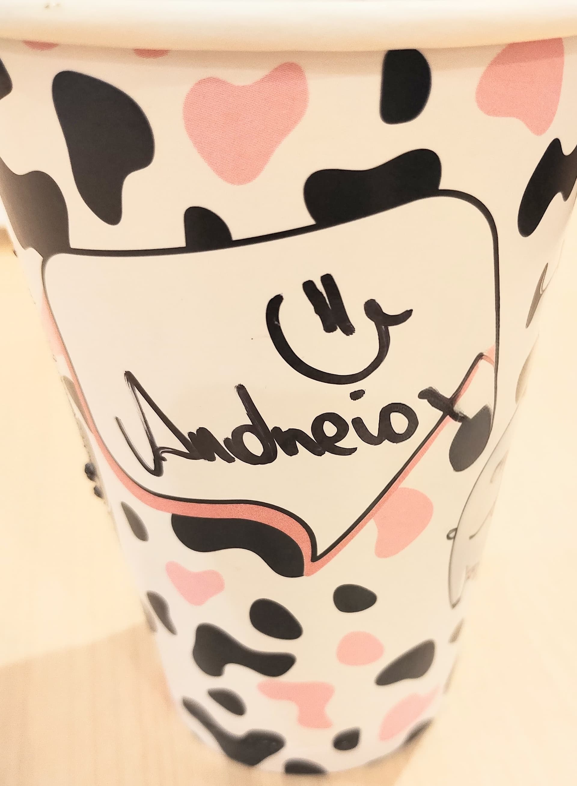 Meu nome ficou fofo nesse milk shake.