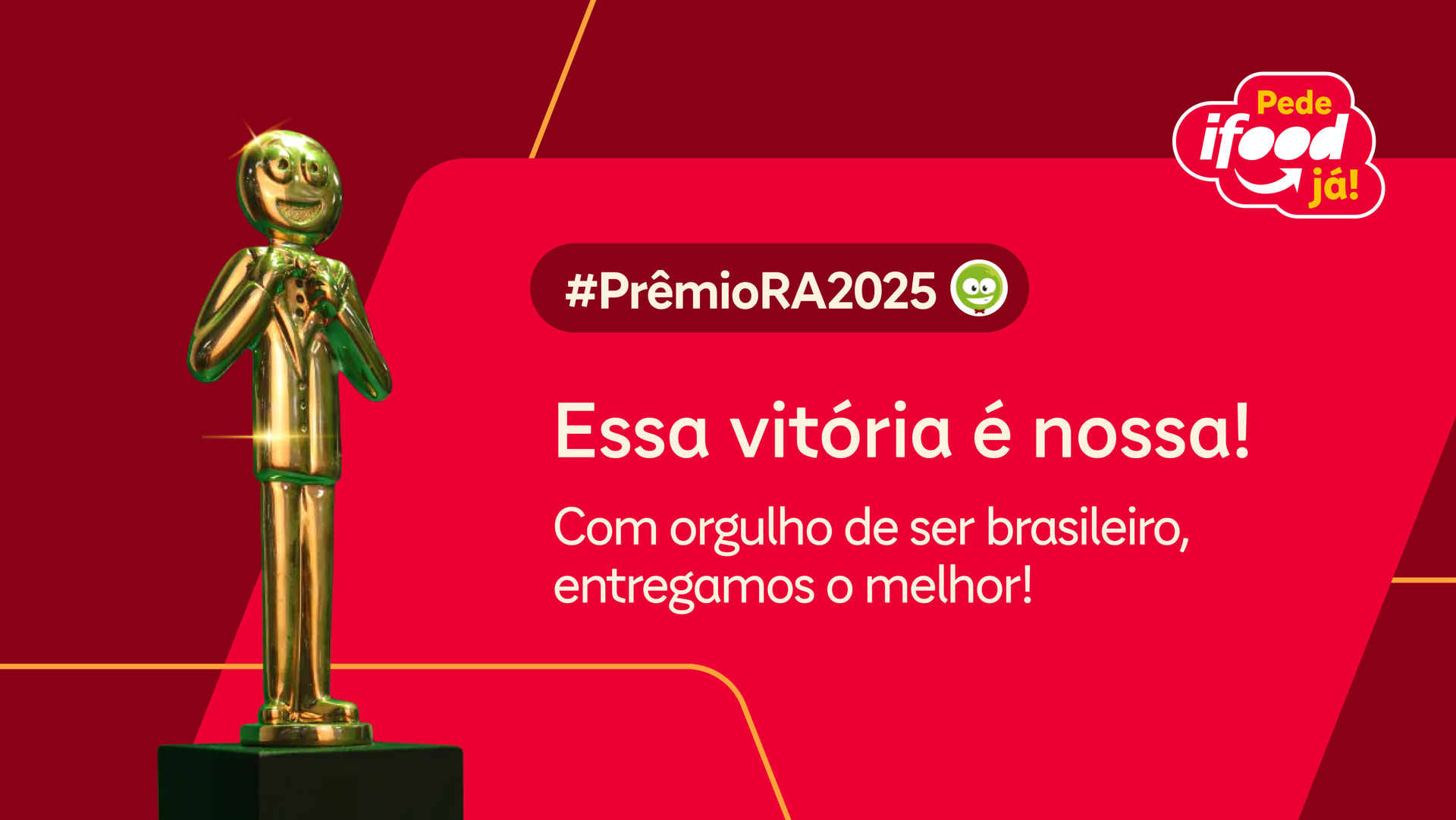 Pelo 8º ano consecutivo, o iFood venceu o Prêmio Reclame AQUI na categoria Alimentos e Delivery. Para nós, esse reconhecimento é a prova de que nosso compromisso em resolver seus problemas e oferecer um atendimento eficiente está no caminho certo.